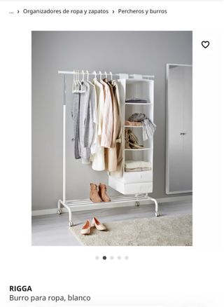Burro perchero de la marca Ikea, ideal para organizar tu ropa. - Estructura metálica. - Color blanco. - Diseño moderno y funcional. Ancho: 111 cm Fondo: 51 cm altura mínima: 126 cm altura máxima: 175 cm Peso máximo: 35 kg Tengo dos unidades, el precio indicado es por unidad