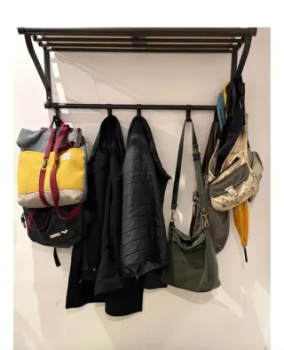 Perchero de pared modelo Portis de Ikea vintage. Combina un diseño moderno con funcionalidad. Ya descatalogado, es muy robusto, aguanta mucho peso y acoge muchas cosas.