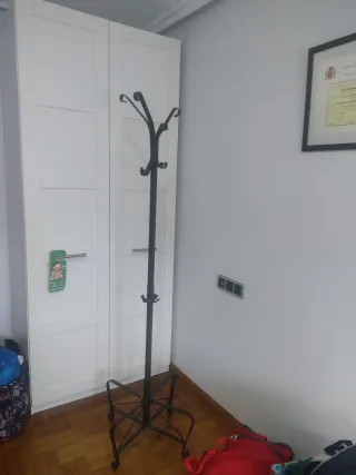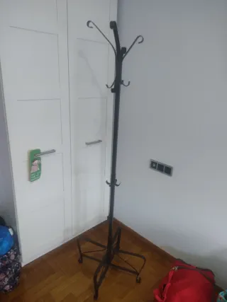 Perchero de pie de IKEA, ideal para organizar tu ropa. Dos percheros a 10€ cada uno. - Estructura de metal resistente. - Diseño moderno y funcional.