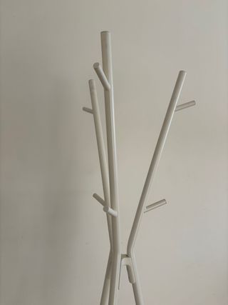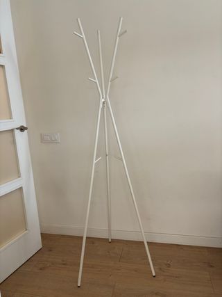 Elegante perchero de pie con un diseño moderno y minimalista. - Estructura metálica. - Color blanco. - Marca Ikea.