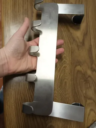 Este perchero de Ikea es perfecto para colgar abrigos, bolsos o toallas sin necesidad de taladrar. - Fabricado en metal resistente. - Diseño moderno en color plateado. - Se cuelga fácilmente en puertas.