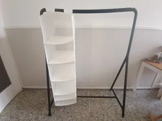 Perchero de pie de la marca Ikea. Un accesorio práctico para organizar tu ropa. - Estructura de metal. - Color blanco.