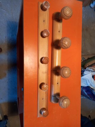 Perchero de pared en madera natural. En muy buen estado. Ideal para usar tal y como está o pintarlo.