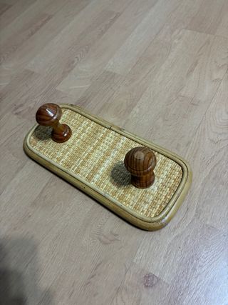 Perchero de mimbre con pomos de madera