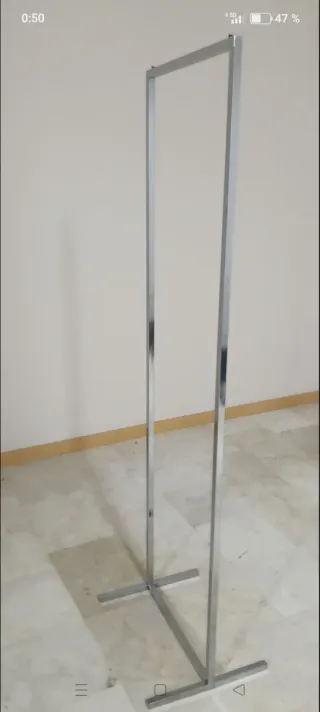 Perchero de pie con estructura metálica, muy fuerte, se utilizaba en tienda de ropa