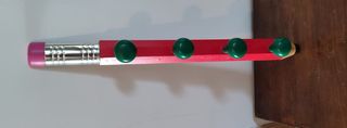 Bonito perchero con forma de lápiz. Ideal para colgar llaves, bolsos u otros objetos. - Tiene cuatro ganchos de color verde. - El cuerpo del perchero es de color rojo.