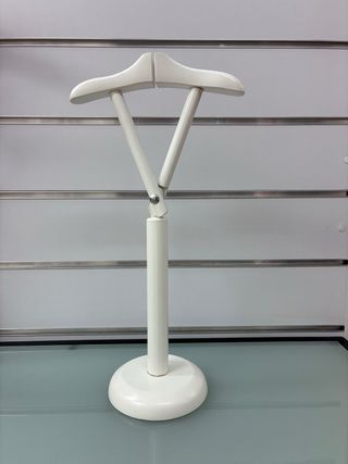 Perchero o burra de pie, estructura de metal resistente con barras extensibles o plegables según necesidades, en su base lleva ruedas para desplazarse a otras estancias, es muy estable y de alta calidad, sin rayas ni pelados..
