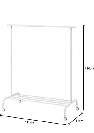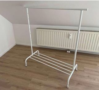Perchero RIGGA de IKEA, muy práctico y estable. Es regulable en altura, tiene ruedas para moverlo fácilmente y una barra inferior ideal para zapatos o cajas. ✔ Buen estado ✔ Modelo resistente (no es el básico) ✔ Ideal para dormitorio, vestidor o invitados Recogida en Barcelona. Si tienes cualquier duda, escríbeme sin problema 😊