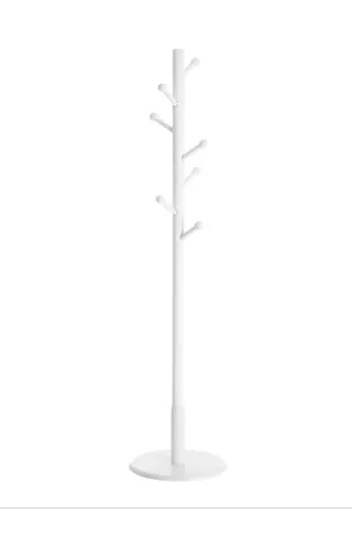 Elegante perchero de pie con un diseño moderno y funcional. - Base redonda para mayor estabilidad. - Múltiples brazos para colgar abrigos, sombreros o bolsos.