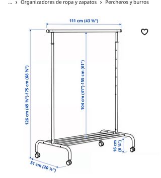 Práctico perchero de pie de Ikea, ideal para organizar tu ropa. - Estructura metálica resistente. - Diseño moderno y funcional. - Base con ruedas para fácil movilidad.