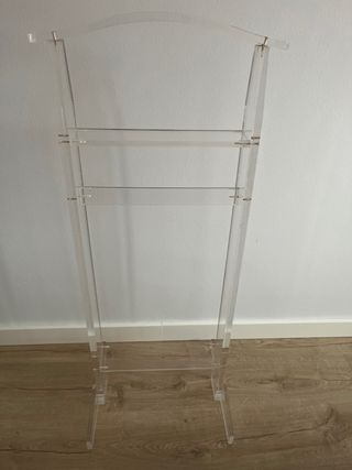 Elegante galán de noche con un diseño moderno y minimalista. Ideal para mantener la ropa organizada y sin arrugas. - Fabricado en metacrilato de alta calidad. - Estructura transparente que se adapta a cualquier decoración. - Diseño ligero y fácil de mover.