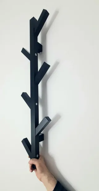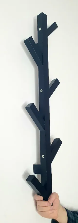 Elegante perchero de pared con un diseño moderno y minimalista. - De madera maciza - Color negro. - Diseño inspirado en un árbol.