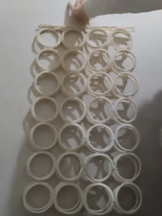 Organizador de tela con múltiples aros para colgar accesorios. - Diseño colgante. - Aros circulares. - Ideal para bufandas, cinturones o joyas.