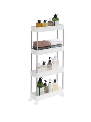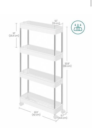 Preciosa carretilla de almacenaje SONGMICS de 4 niveles, ideal para baño u otros espacios. Es de color blanco y está en muy buen estado. - Perfecta para organizar el baño o la cocina. - Cuatro niveles de almacenaje. - Estructura robusta y fácil de montar.