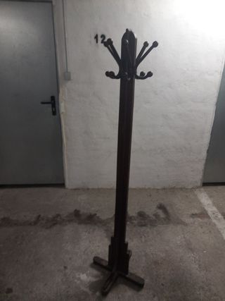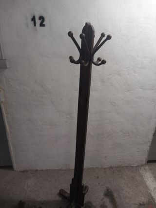 Perchero de pie vintage de madrea con un diseño clásico y atemporal. En buen estado sin carcomas ni bichos. Ideal decoración estilo vintage. Altura 175cm. - Fabricado en madera. - Acabado en tono marrón oscuro. - Múltiples ganchos para colgar abrigos, sombreros o bolsos.