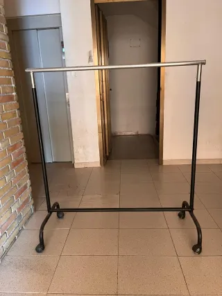 Perchero de pie con ruedas, ideal para organizar tu ropa. Se vende desmontado - Estructura de metal resistente. - Diseño moderno y funcional. - Base con ruedas para fácil movilidad.