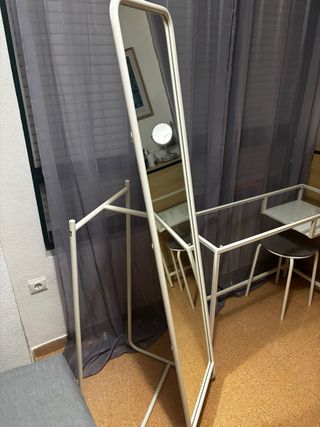 Espejo Metálico Blanco con Perchero