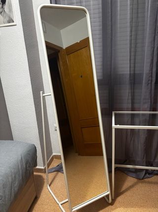 Este espejo de estructura metálica presenta un diseño moderno y funcional. - Acabado en color blanco. - Incorpora un perchero integrado para colgar accesorios.