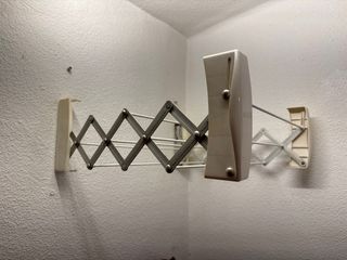 Tendedero plegable de la marca Cuncial, modelo Capry. Es adaptable para baños. - Estructura de metal y plástico. - Color rosa y blanco.