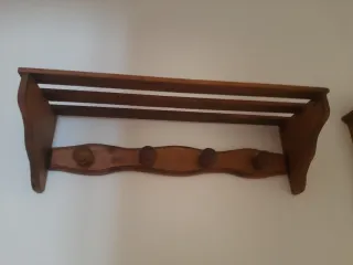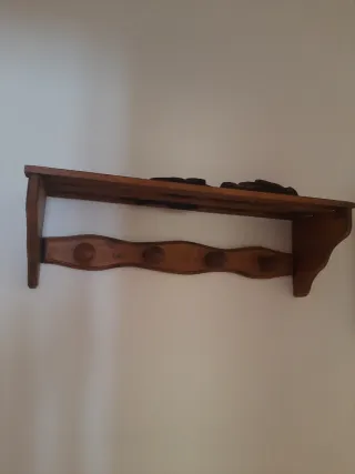 Comprado a un restaurador del Rastro - Fabricado en madera. - Color marrón natural. - Diseño curvo con múltiples ganchos. - Incluye un detalle de pomo en un extremo.