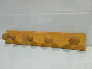 Perchero artesanal de madera con ganchos de pimien