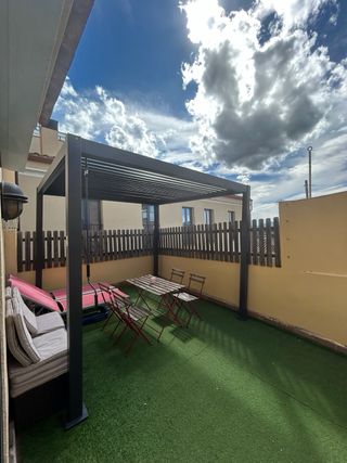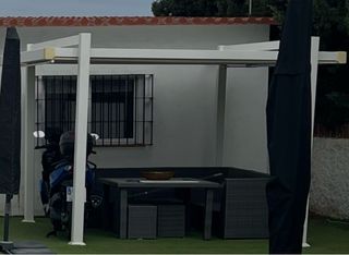 Pérgola bioclimática toda de aluminio, con 5 meses de uso, la vendo por normativa comunitaria. Medidas: alto 2,80 / ancho 3,30 / largo 3 metros Se cierran y se abren lamas buscando sol automaticamente. Se cierra sola automaticamente cuando empieza a llover. Con mando a distancia - Acabado en color blanco y marrón. - Materiales resistentes para mayor durabilidad.