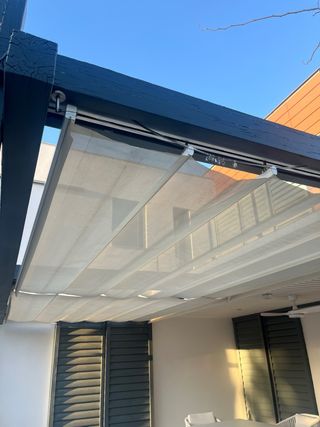 Pérgola de tela y madera