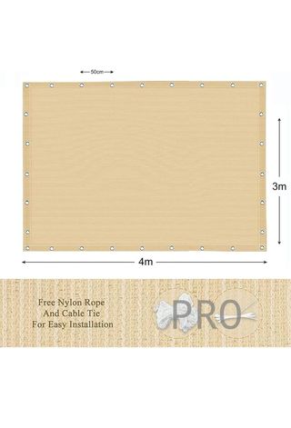 Toldo Vela de Sombra Protección Solar Rectangular, HDPE 95% Protección UV Toldo de Coche con Cuerdas y Bridas para Jardín, Patio, Balcón, Camping, Exteriores pérgola, 1 m 1 Agujero, Arena (3x4m)