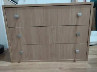 Cajonera de madera con tres cajones. - Diseño moderno y funcional. - Tiradores metálicos cuadrados.
