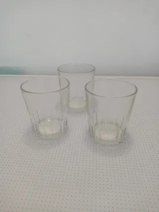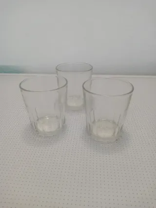 Conjunto de tres vasos de vidrio, ideales para café o cualquier bebida. - Diseño clásico y funcional. - Aptos para lavavajillas. No envio