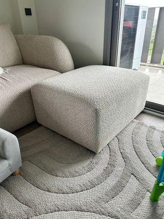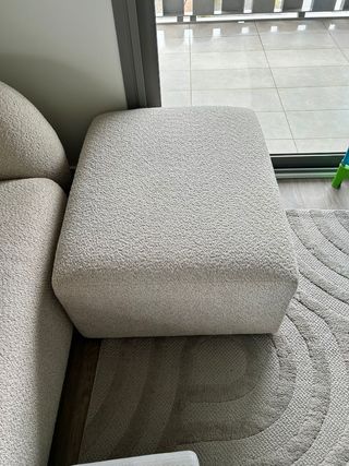 Este puf de Kave Home aporta un toque de confort y estilo a cualquier espacio. Medidas 90 x 75 x 40 cm. Tela borreguito corto apto para todas las épocas. No da calor en verano. Estado impecable, siempre ha estado tapado y en segunda residencia. Comprado en 2024 por 400 euros, todavía se lo estoy echando en cara a mi mujer. Color marfil claro, blanco roto, beige o como lo quieran llamar en cada tienda. Entrega en mano entre Valencia y Tarragona o transporte a cargo del comprador.