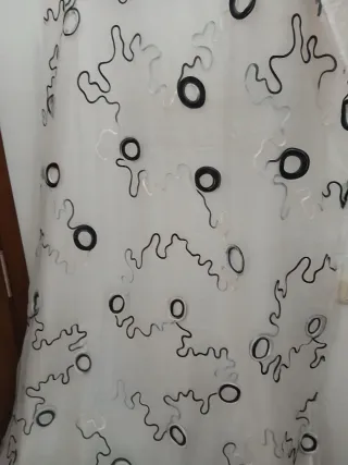 Cortinas con aros blancas y negras.