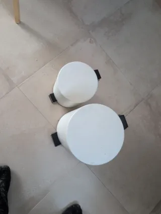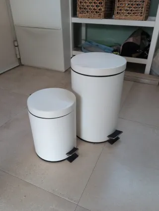 Set de dos cubos de basura con pedal, uno de 5 litros y otro de 12 litros. Son ideales para separar residuos. - Cubo pequeño de 5 litros (20,5*27,8cm) - Cubo grande de 12 litros (32*39,2cm) - Mecanismo de pedal para apertura. - Diseño cilíndrico.