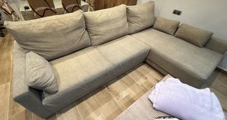 Lo vendo por mudanza, Solo 2 meses de uso. Sofá cama con chaise longue en color gris. Este sofá se transforma rápida y fácilmente en una cama amplia. Espacio de almacenaje bajo la chaiselongue. precio negociable.