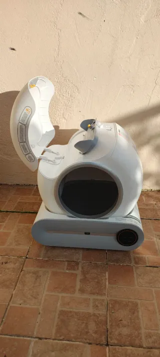 Caja de arena automática para gatos con conexión WiFi. - Diseño moderno y funcional. - Control a través de aplicación móvil.