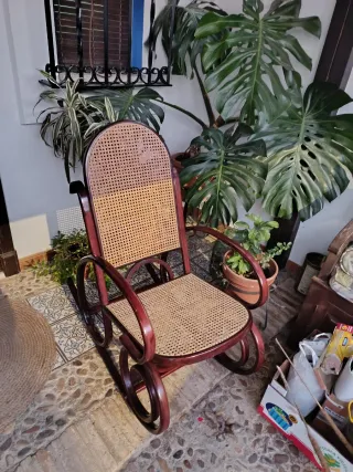 Mecedora de madera y ratán