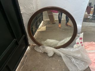 Elegante espejo con marco de madera. - Marco de madera. - Cristal transparente.