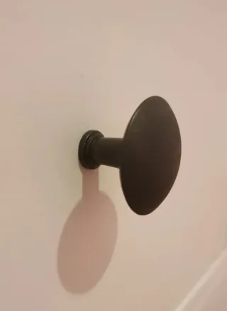 Set de 9 pomos de diseño ovalado para muebles. - Acabado en metal negro. - Estilo moderno y elegante.