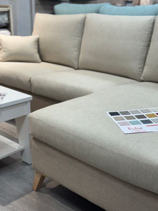 Chaiselongue de tela en color beige (modificable). Un mueble cómodo y elegante para tu salón. MEDIDAS 265X160 (modificable) - Diseño moderno. - Patas de madera (incremento de 50€).