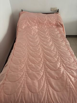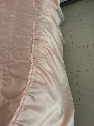Colcha acolchada en tono rosa, ideal para cama de 90 cm. Su diseño con relieve le da un toque elegante. - Acabado satinado. - Relleno acolchado para mayor confort.