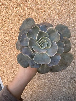 Planta suculenta de la familia Echeveria, con hojas carnosas y forma de roseta. - Hojas de color verde azulado. - Ideal para coleccionistas de plantas.