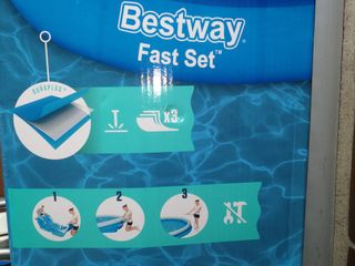 Piscina inflable Bestway Fast Set de 3.05 metros de largo por 76 cm de alto. Es fácil de montar y desmontar. - Incluye protector y alfombra de 3x3 metros para jardin. - Incluye depuradora.