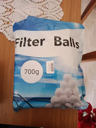 Bolas filtrantes para piscinas, bombas de filtración y acuarios. - Material: 100% polietileno. - Peso: 700 g. - Diámetro: 5 cm. - Equivalencia: 25 kg de arena filtrante.