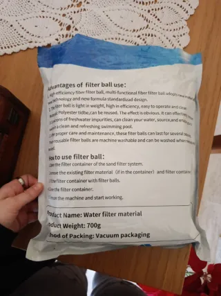 Bolsa de bolas de filtro para piscinas, con un peso de 700g. - Contiene múltiples bolas blancas. - Es muy adecuada para filtros de arena y otros filtros de agua en piscinas de verano.