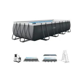 INTEX 55220 - Piscina Desmontable Rectangular Ultra XTR Frame 549x274x132 + depuradora MarcaIntex Capacidad17203 Litros Dimensiones del producto2,74l. x 5,49an. x 1,32al. metros FormaRectangular ColorBlue/Dark Grey MaterialCloruro di polivinile (PVC),Lega di acciaio