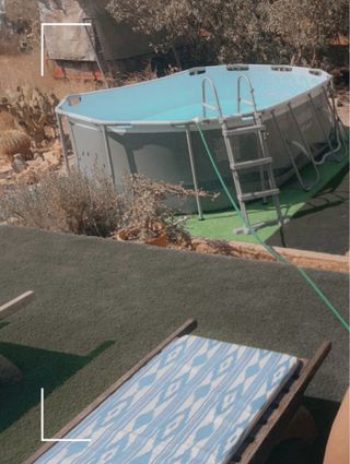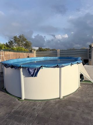 Piscina desmontable de gran tamaño, ideal para disfrutar en familia. Comprada en 2025 - Estructura de tubos resistente. - Revestimiento de plástico duradero. Tiene algun tubo doblado, pero aguanta el agua, también se pueden comprar recambios por internet.