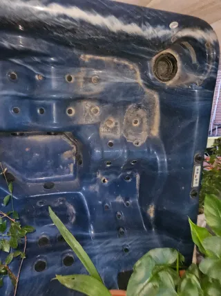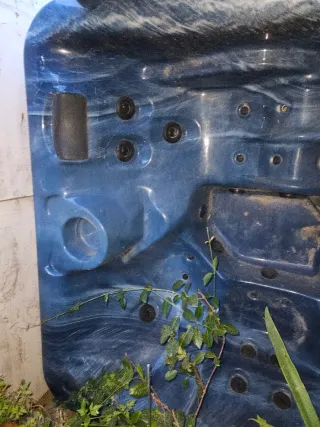 Jacuzzi en fibra azul y blanco que necesita reparación (raja en la fibra y reponer algún tubo. Los motores funcionaban cuándo se desmontó: hay que comprobarlos). Ideal para reparar con facilidad. - Diseño con múltiples chorros. - Acabado marmoleado azul y blanco. - Medidas aprox: 210 x 210 x 95 ESTÁ EN LOS HUEROS (VILLALBILLA), CERCA DE ALCALÁ DE HENARES. Posibilidad de TRANSPORTE En zona corredor del Henares (CONSULTAR). PRECIO NEGOCIABLE TRAS INSPECCIONAR Y VALORAR OFERTA.