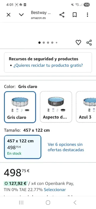 Piscina desmontable Bestway Steel Pro MAX, a estrenar. Comprada por error - Diámetro: 4.57 m - Altura: 1.07 m - Estructura de metal resistente. - Revestimiento de PVC y poliéster de alta resistencia.