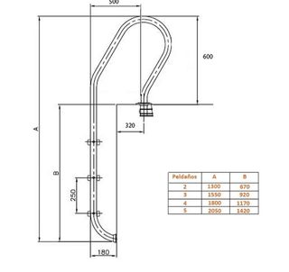 Escalera piscina acero inoxidable