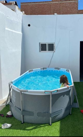 Piscina desmontable de gran tamaño, perfecta para disfrutar del verano. - Ancho 305 cm - Altura de 132 cm. - Estructura robusta de metal y plástico. - con depuradora y skimer y escarela un solo verano de uso, está nueva, la vendo porque voy a hacer la piscina de obra La vendo con la escalera de césped que sale en la foto